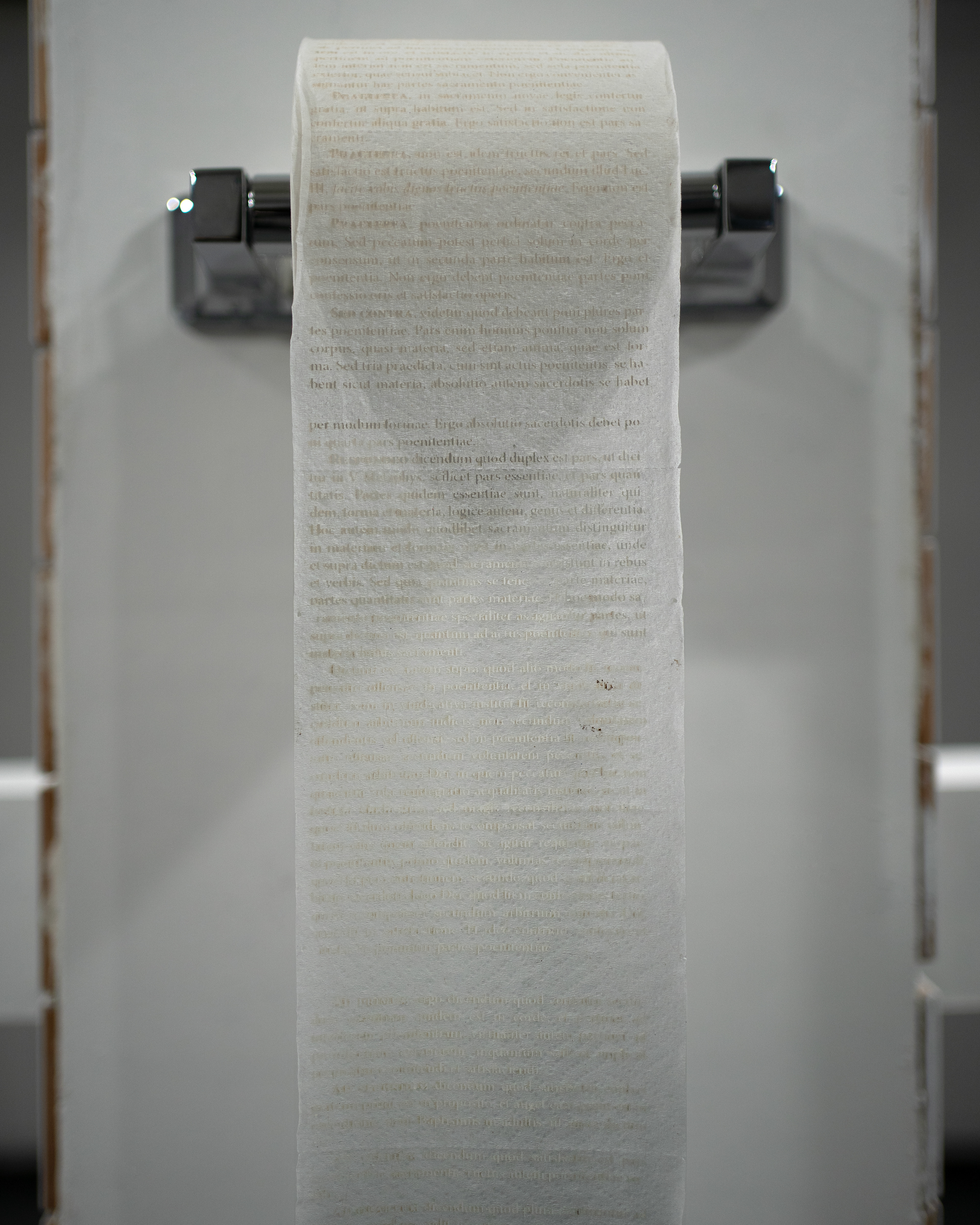 Aquinas' Summa Theologica etched onto toilet paper.
